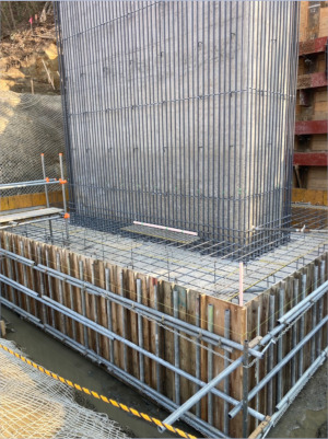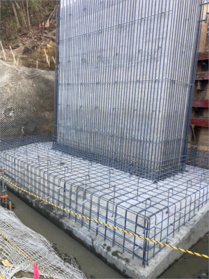 ・橋脚巻き立て工(アンカー定着、鉄筋組立、型枠組立)